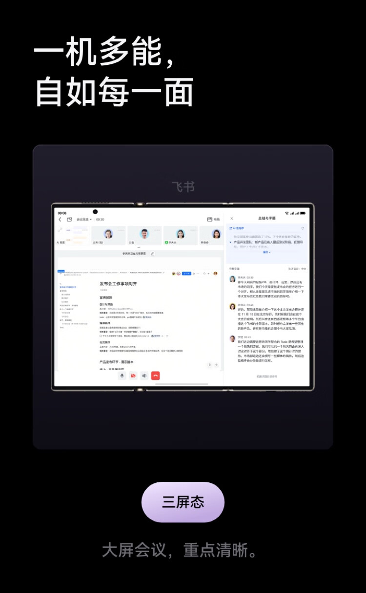 三折叠大屏生产力 鸿蒙大屏AI 华为三折叠屏 鸿蒙智能手机